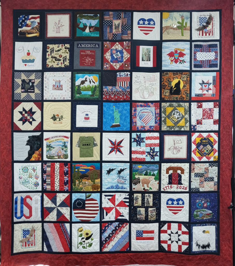 ALSO MADE BY DLQ MEMBERS, THE QUILT BELOW CELEBRATES OUR NATION’S 250TH BIRTHDAY.