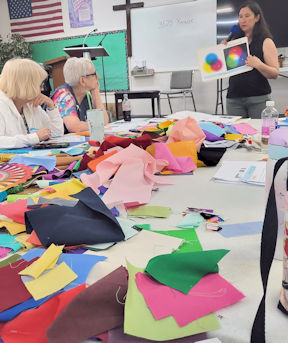 Linda Sullivan of Colourwerx (https://colourwerx.com/) presented her wonderful trunk show on February 1, 2024 and classes on that Thursday and Friday. Below are some pictures from her trunk show.